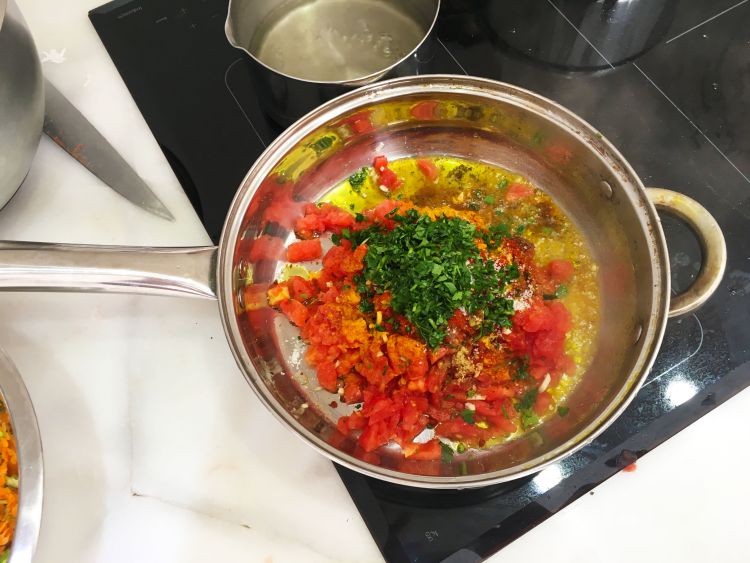 A mix of sweet juicy tomatoes, peppers, parsley and coriander served warm
